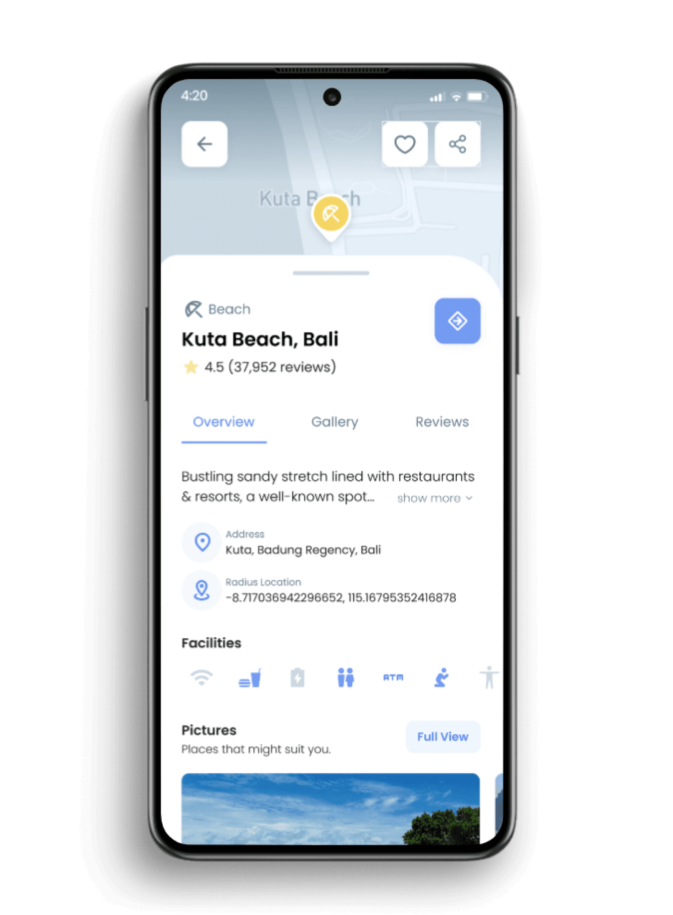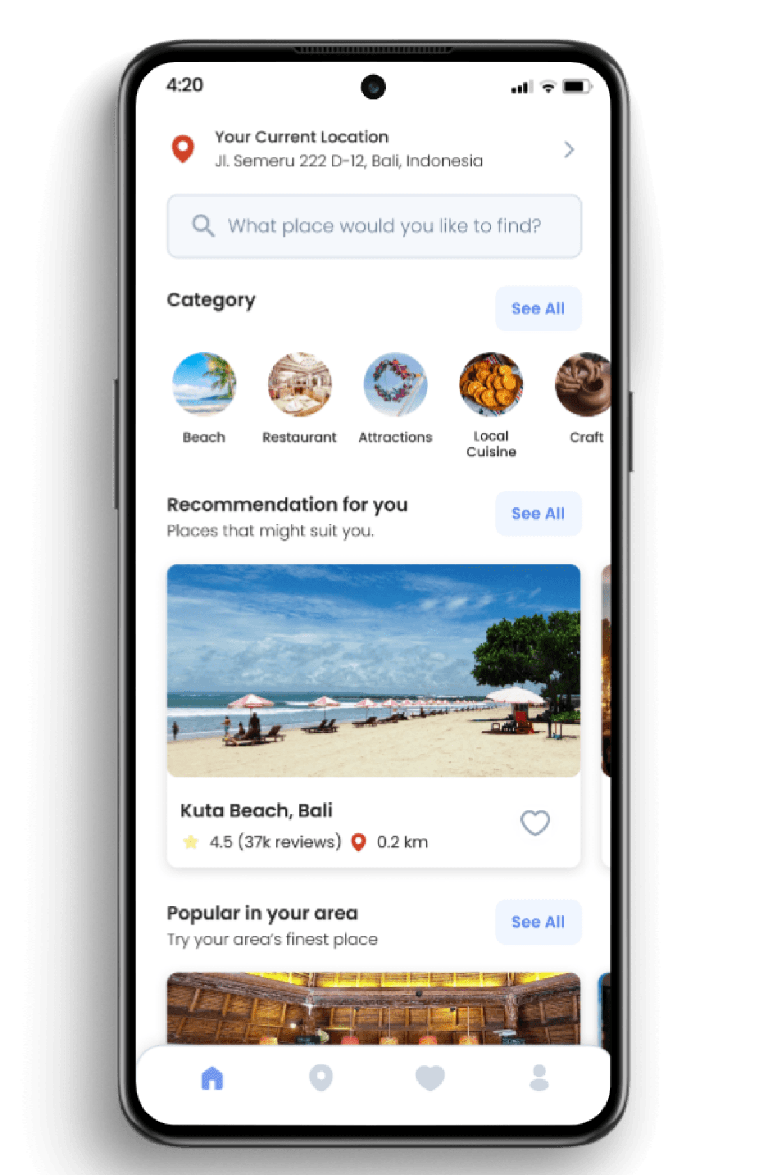 1st place in a UI/UX competition for an app that recommends the best nearby places to visit.